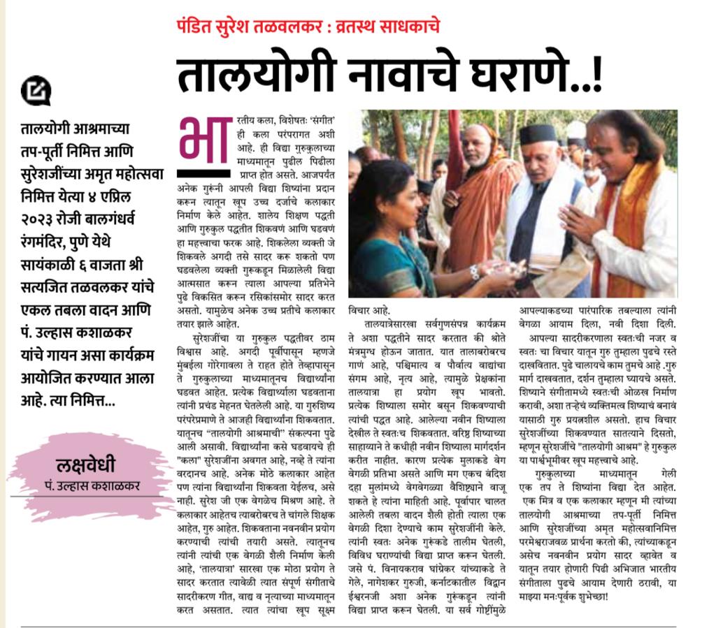तालयोगी आश्रमच्या तपपूर्ती निमिताने विशेष लेख